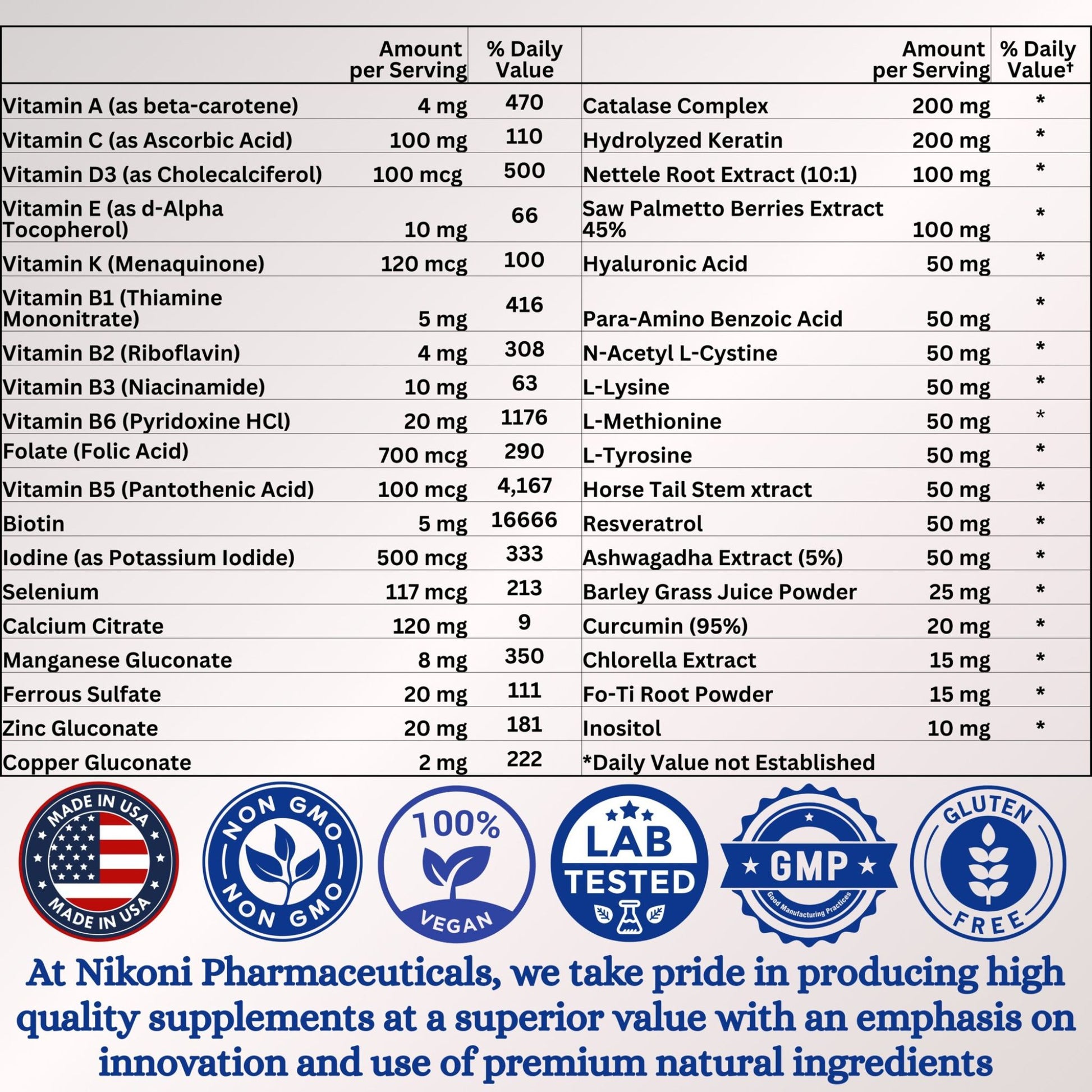 Nikoni Liposomal Anti Gray Hair Formula – 7 Vitamins, 6 Minerals, 5 Amino Acids & 12 Plant Extracts, for Healthy Hair Maintenance– 120 Vegan Softgels