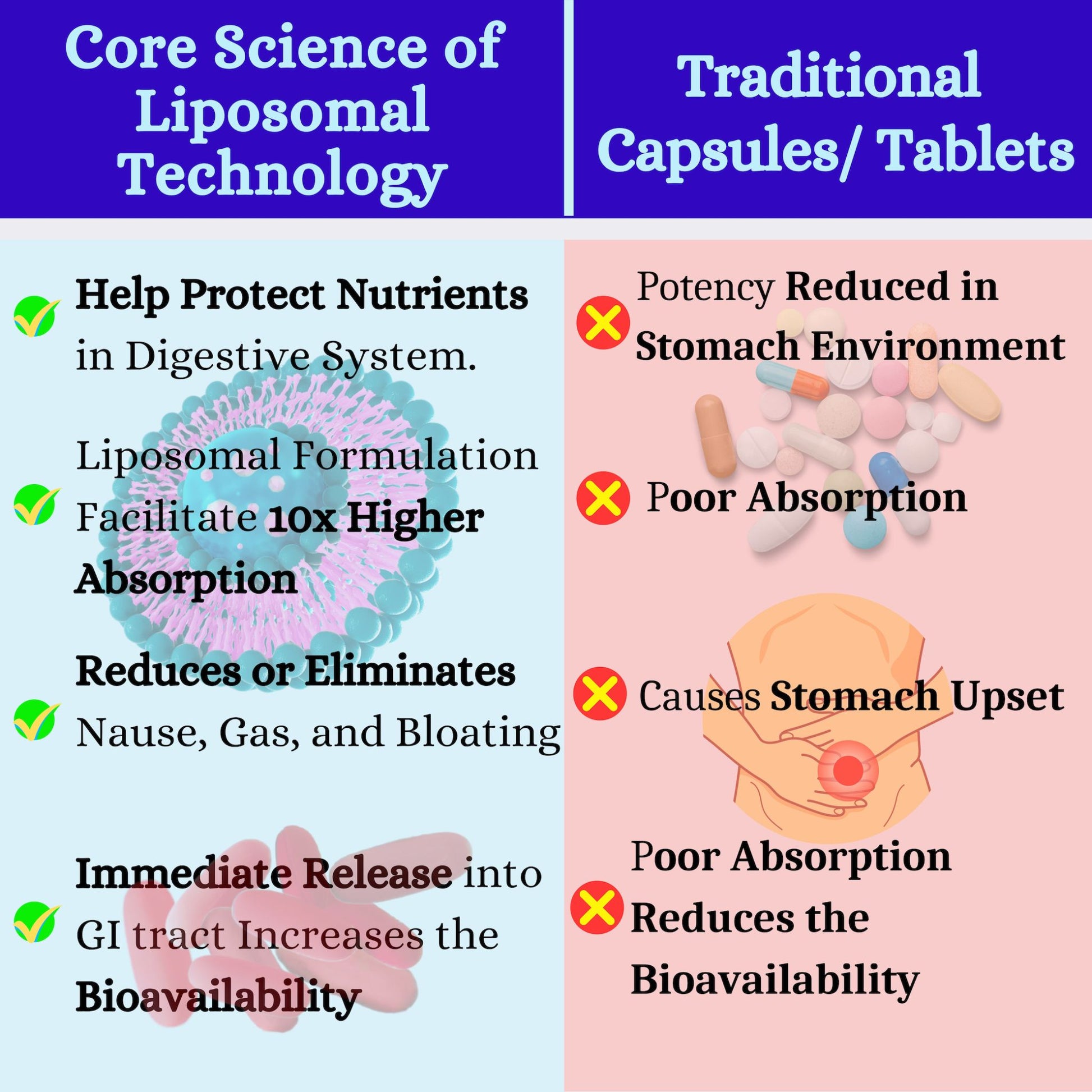 - Advanced Liposomal Delivery – Formulated with a phosphocholine complex to enhance stability, improve absorption, and maximize bioavailability compared to standard glutathione supplements.*