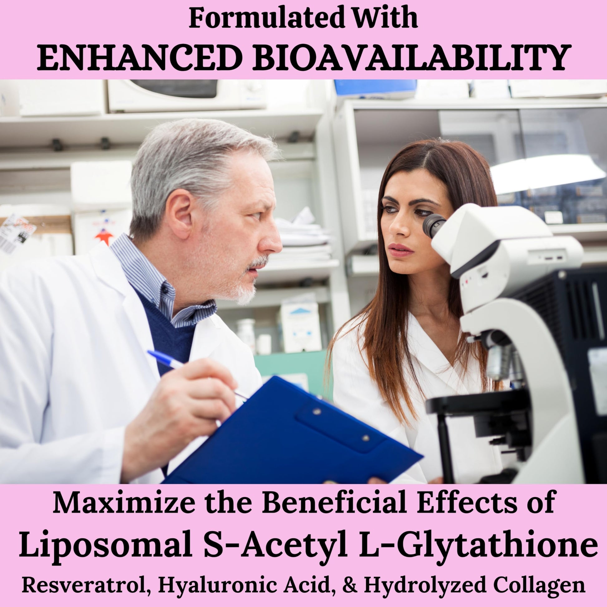 - 4-in-1 Advanced Formula – Combines S-Acetyl L-Glutathione, Resveratrol, Hyaluronic Acid, and Collagen in one liposomal supplement for comprehensive daily wellness.*