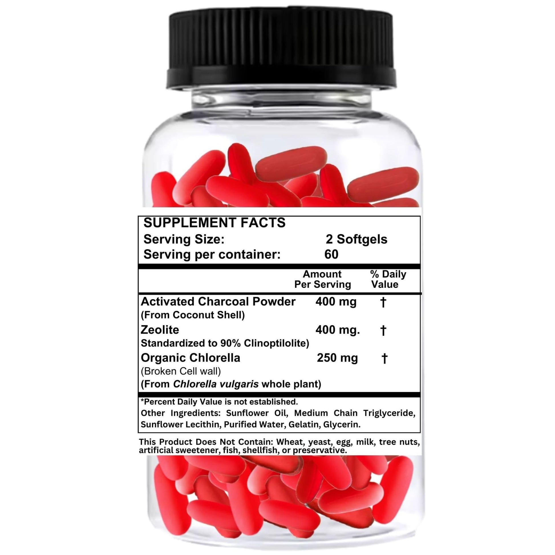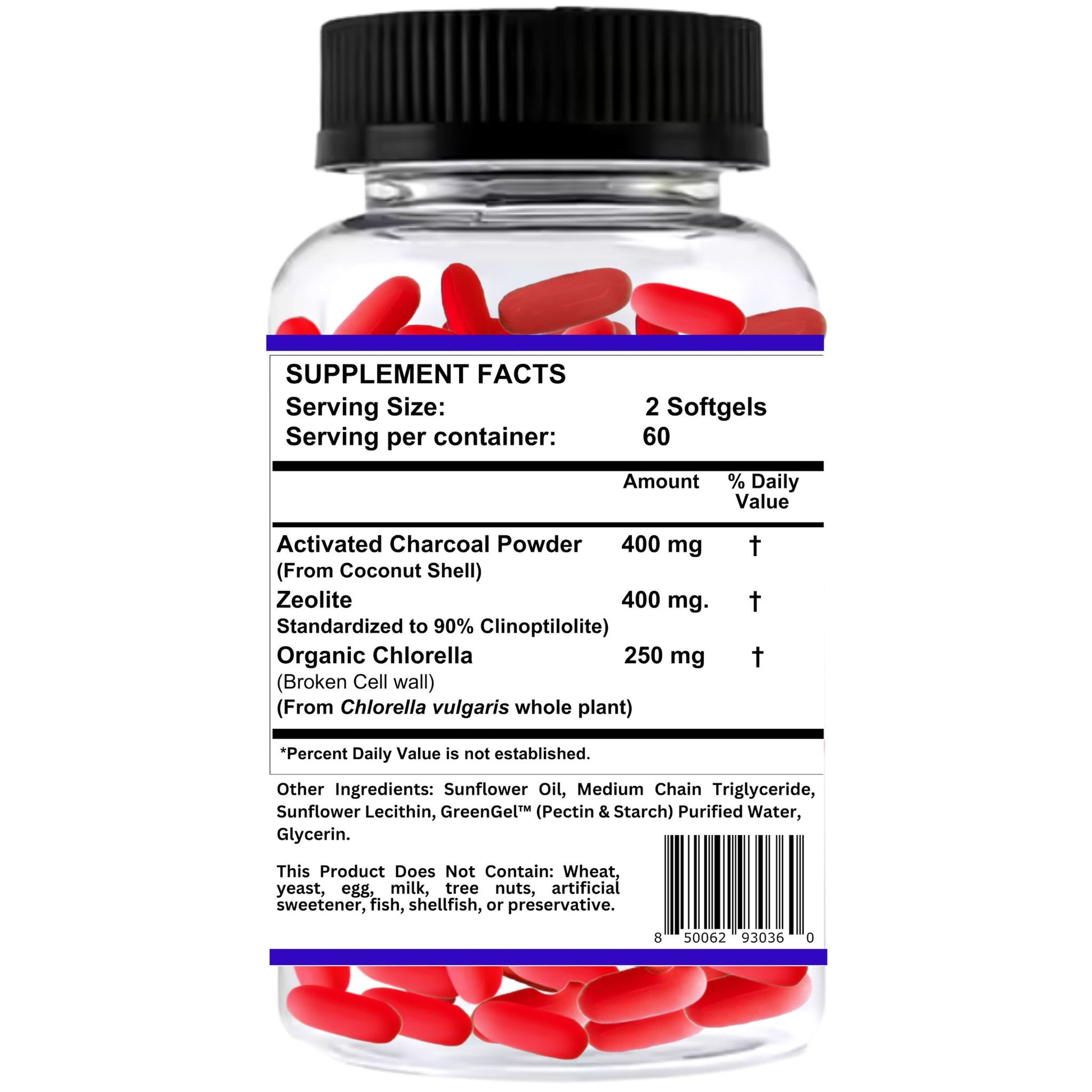 - Triple-Action Formula* – Combines 400 mg of ultra-fine zeolite clinoptilolite, 400 mg of activated charcoal, and 250 mg of organic chlorella extract to provide complementary support for internal cleansing.*